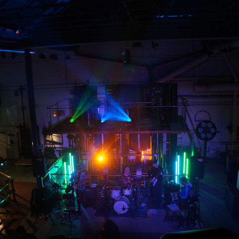 The design for this event had a heavy aspect of freeform and flexibility from the beginning as it was a busked event with a relaxed atmosphere. My design went through multiple iterations from both a plan and MA3 show file perspective. It was key that my design allowed for a highly flexible busking show file as the acts varied somewhat in style throughout. Furthermore, the entire venue needed to feel part of the design and not just the tight stage area in front of the large steam machine. As such, the small, magnetised and versatile AX3's and renowned Helios/Titan tubes at my disposal were integrated into any and all steam machine exhibits around the space, bringing the venue to life and allowing maximum flexibility in controlling atmosphere, feeling and mood in the room as a whole rather than having any separation from the performance space. Levante moving lights were used as a rudimentary overhead by rigging them on the steam machine's integrated gallery that overlooked the stage area. In addition, Karif and Diablo moving lights were utilised as part of a versatile ground package. Including backlighting the main steam machine in a multitude of ways depending on position and zoom parameters, allowing for a wide range of pre-programmed design choices to be called up on the fly. This then incorporates the machine in both subtle or dynamic effects depending on in-the-moment choices. Despite this event being busked and the evening, itself feeling fairly relaxed, there were multiple key design choices that remained a constant as a means of maintaining a recognisable continuity between the lighting design itself, the machines and the purpose of the evening. Such things as harsh cold and somewhat organic textures and colour palettes were a key part of this to reflect the nature of the event and the lyrics in many of the songs. However, regular stark contrasts were a key design choice to wake the room up and allow for a defined feeling of change in the room. Furthermore, some key aspects of music were pre-designed and pre-programmed, including pixel-based fire effects and other key defined aspects of some of the music that were discussed with the artists. All in all, this was a very successful design in fulfilling its purpose as a reflection of the event and I am very happy indeed with the final outcome. Please feel free to look below at the photos taken of the event.